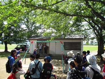 芳澤謙吉翁顕彰会会長の古川様から公園の説明を受けました。疲れ知らずの子供たちは遊具で遊びます!